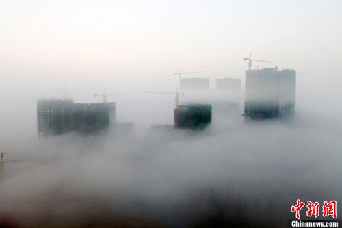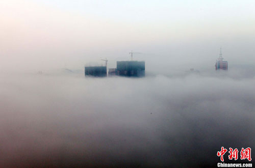 12月2日清晨,貴州省安順市出現(xiàn)平流霧奇觀,整個市區(qū)宛如仙境。 中新社發(fā) 盧維 攝