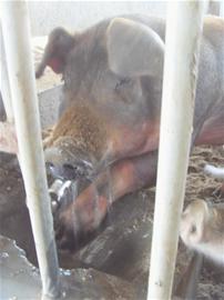 ????這時(shí),一頭體格健壯的豬靠近了噴頭,張開嘴巴咬住了這個(gè)噴頭,清澈的水流到了豬的嘴里,原來這是豬喝水的地方。