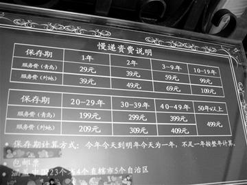 ????記者注意到,慢遞業(yè)務雖然時尚,但是資費不菲,這也是使用者不多的一個原因。以慢遞郵局已受理的最長寄遞年限郵件為例,這封19年后收到的郵件,僅服務費就有109元,這還不包括信封和信紙的費用 (屬于專用信封和信紙);而50年后收到的郵件服務費高達499元/封。