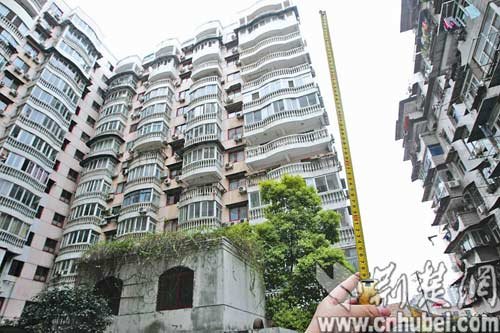 小區(qū)物業(yè)公司曾經(jīng)理介紹,該幢樓不僅出現(xiàn)縫裂,還可見明顯的傾斜,經(jīng)初步檢測(cè),整幢樓已向香港路方向傾斜約15度。
