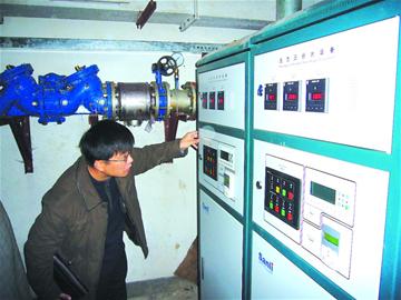 ????昨天上午,記者來到位于西部的銀座居民小區(qū)查看二次供水系統(tǒng)。在這里,記者并沒有看到以往的蓄水池。“我們已經(jīng)用上新式二次供水設(shè)備了。 ”物業(yè)負(fù)責(zé)人告訴記者:“有了這套新設(shè)備,我們也不用擔(dān)心二次供水二次污染了。而且,居民普遍反映水壓也比以前足了?!庇浾呖吹竭@套新設(shè)備都是用封閉管道連接,沒有能夠看到水流的地方?!斑@就是咱們今年推廣的疊壓式新型二次供水設(shè)備?!笔泄┧芾硖幪庨L張國輝告訴記者,以前老式二次供水系統(tǒng)需要有蓄水箱或者蓄水池來蓄水之后再加壓送到居民家中。而如今推廣了這種新式疊壓式二次供水設(shè)備就相當(dāng)于給每個(gè)二次供水單位加了一個(gè)供水 “動(dòng)力心臟”。這樣,自來水從水廠出來之后經(jīng)過這套系統(tǒng)增加動(dòng)力之后直接流到居民家中。因此,這一過程中就不需要蓄水箱之類的設(shè)備,整個(gè)過程都是在封閉的管道中進(jìn)行。設(shè)備運(yùn)行中無需進(jìn)行排放氣,真正做到全密閉運(yùn)行,并確??諝庵械募?xì)菌無法進(jìn)入系統(tǒng)。因此,也就杜絕了蓄水可能產(chǎn)生的二次污染,居民家中的二次供水可以保證是潔凈安全的。 (記者 田 璐)