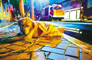 ????本月9日,某論壇發(fā)起了一項(xiàng)《評(píng)選2010年度十大感人動(dòng)物》評(píng)選活動(dòng),13日評(píng)選結(jié)果出爐,上海大火“守望犬”奪冠。
