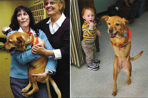 ????小狗Faith(信念)出生時(shí)共有三條腿——兩條健全的后腿和一條開始萎縮的前肢(前肢后來用手術(shù)除掉)。在主人的幫助下,F(xiàn)aith漸漸學(xué)會(huì)用兩條腿平衡和跳躍式地前進(jìn),最后可以跟人一樣用兩腿步行。Faith的信念感動(dòng)了無數(shù)人,它的堅(jiān)強(qiáng)也鼓舞了更多人,它還登上了美國(guó)《人物》周刊封面。