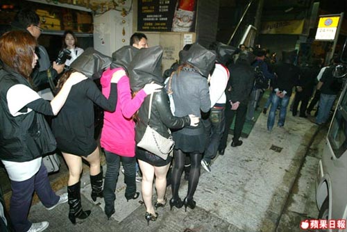 警方抓獲多名打扮性感的內(nèi)地女子。圖片來源:蘋果日報