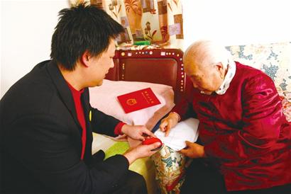 晚報(bào)訊 昨天,家住魚山路30號(hào)88歲的郝大娘,在家里等來了市房地產(chǎn)交易中心的工作人員,在相關(guān)的材料上蓋章摁手印后,她高興地拿到了自己的房產(chǎn)證。這是市房地產(chǎn)交易中心今年第541次上門送證。他們推出的登門服務(wù)專門幫助行動(dòng)不便的老年人等特殊群體。