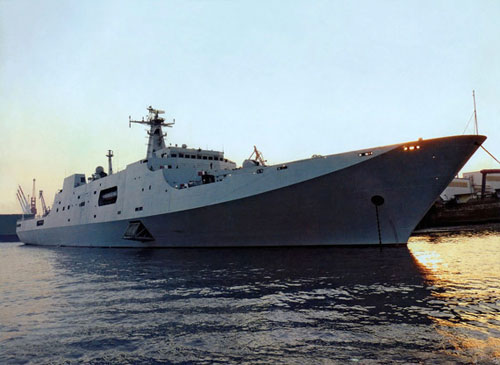 資料圖:“昆侖山”號(hào)兩棲船塢運(yùn)輸艦。