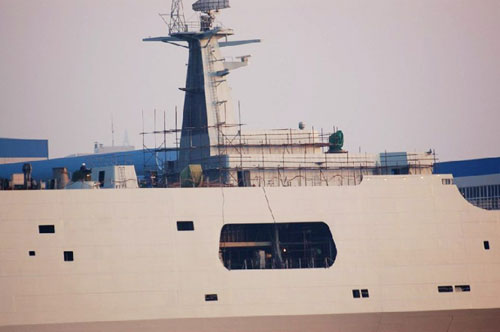 東方網(wǎng)資料圖:曬裝中的“井岡山”艦。