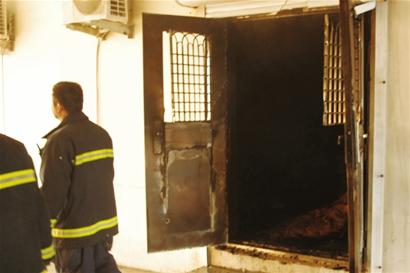 ????記者在現(xiàn)場看到,6輛消防車停在這家單位周圍,火情已經(jīng)得到控制,消防隊(duì)員架起高壓水槍正在撲滅屋內(nèi)火場的一些余火,幾名消防隊(duì)員進(jìn)入火場,搜救是否有人員被困。記者看到起火的是這家單位一樓一間單獨(dú)的房間,屋內(nèi)滿是嗆人的焦糊味,房間的鐵門因?yàn)榛鹧娴母邷匾呀?jīng)扭曲變形,屋內(nèi)的桌椅和電器被燒得焦黑一片,但濃煙仍然從窗口往外冒。