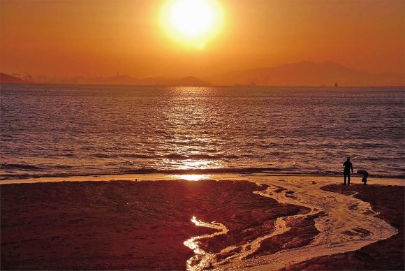 12月22日,是二十四節(jié)氣中的冬至。在第一海水浴場(chǎng),一對(duì)情侶在沙灘邊玩耍嬉戲,那一瞬醉人的夕陽(yáng)與曲折浪漫的細(xì)流勾畫出一道迷人的冬季戀歌。記者 張曉鵬 攝