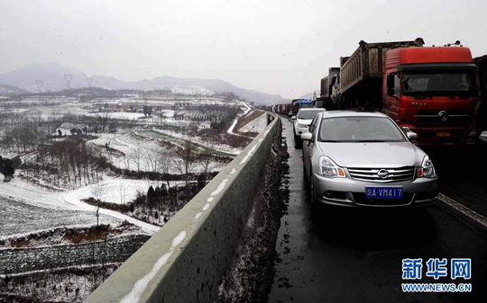 12月24日,國(guó)道連霍高速公路三門峽段由于降雪造成交通擁堵。當(dāng)日,位于豫西山區(qū)的三門峽地區(qū)普降小到中雪,這是入冬以來(lái)這一地區(qū)的首次降雪,對(duì)緩解當(dāng)?shù)睾登槠鸬椒e極作用。朱祥攝