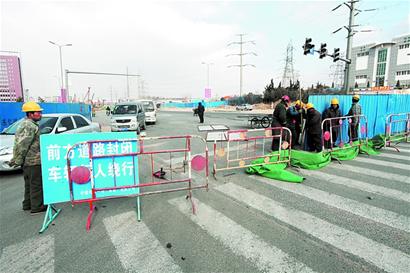 ????昨天早上,記者趕到海爾路與株洲路路口封閉現(xiàn)場的時(shí)候,工人剛開始設(shè)置封閉圍欄,少數(shù)小車還在斷續(xù)地通過?!敖裉焖闶钦椒饴妨?,封完后就不能通行了?!爆F(xiàn)場一名施工人員告訴記者,之前這段路一直處于半封閉狀態(tài),兩側(cè)都有一個(gè)車道或者輔道供車輛通行,但交通高峰時(shí)段就會(huì)出現(xiàn)擁堵,也影響了施工。