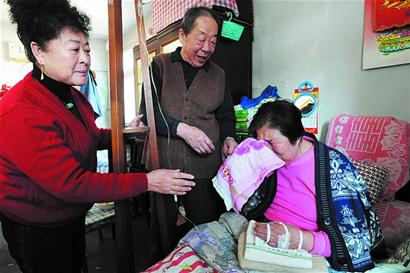 ![]() 偏癱的她不想拖累老伴 ????韓敦義,77歲;張秀蘭,73歲。兩人從二十幾歲結(jié)婚后,一路牽手走過(guò)50多年,日子雖然過(guò)得磕磕絆絆,但兩人相扶相助,一家人生活也很和睦。6年前,張大媽不幸得了偏癱,吃喝拉撒只能在床上,而韓大爺絲毫沒有嫌棄老伴,一直盡心盡力地照顧老伴??勺罱膫€(gè)月,張大媽脾氣變得特別壞,整天找茬吵架,還非要鬧著和韓大爺離婚,韓大爺執(zhí)意不肯,張大媽便要死要活。 ????“她怎么可以這樣對(duì)我?。俊表n大爺經(jīng)??薜美蠝I眾橫,苦勸老伴無(wú)果,韓大爺只好跑到海琴社區(qū)求助,“和事佬”協(xié)會(huì)迅速展開一場(chǎng)化解家庭危機(jī)的行動(dòng)…… ????“金婚”夫婦突然鬧起離婚 ????住在洛陽(yáng)路29號(hào)甲的韓大爺和張大媽夫婦,在外人眼中,可謂典型的模范夫妻,結(jié)婚50多年來(lái)很少聽見兩人拌嘴,更不用說(shuō)吵架。而最近幾個(gè)月,鄰居們卻經(jīng)常聽到兩人大聲吵架,偶爾還會(huì)聽到摔碎東西的響聲,而張大媽吵完后經(jīng)常嗚嗚大哭,哭著訴說(shuō)韓大爺對(duì)她不夠關(guān)心,不給她做好吃的,不為她治病…… ????當(dāng)時(shí)說(shuō)起這事,韓大爺是一臉的委屈:每天早晨一起床他會(huì)為老伴換洗尿布,隨后為老伴做可口的早飯,然后一勺勺地喂給老伴吃;上午趕完早市,為老伴洗完尿布,他又忙著為老伴做完午飯?jiān)傥癸?;中午也顧不上午休,洗刷完碗筷,再趕去醫(yī)院為老伴拿藥,回來(lái)再準(zhǔn)備晚飯;自學(xué)按摩的他,晚上會(huì)為老伴按摩偏癱的雙腿…… “做到這樣還再怎么做呀?”讓韓大爺想不明白的是,他這樣照顧老伴,老伴咋還非要和他離婚呢?韓大爺想不明白,社區(qū)鄰居們就更納悶了,張大媽的葫蘆里到底賣的是啥藥??? ????“和事佬”探出背后隱情 ????老伴執(zhí)意要離婚,鬧到最后除了找茬吵架,甚至以不吃飯“抗?fàn)帯?,被逼無(wú)奈的韓大爺只好到海琴社區(qū)居委會(huì)來(lái)訴苦。張大媽患上偏癱臥床不起,心情肯定會(huì)變差,但憑借夫妻倆這么多年的感情,她肯定不會(huì)無(wú)緣無(wú)故地鬧離婚……海琴社區(qū)“和事佬”協(xié)會(huì)會(huì)長(zhǎng)紀(jì)玉蘭聽完韓大爺?shù)目拊V后,感覺事情沒有這么簡(jiǎn)單,于是她拉上協(xié)會(huì)會(huì)員及居委會(huì)副主任譚梅芳一起去探望張大媽。 ????“你們老兩口走到今天不容易,大爺里里外外照顧這個(gè)家,還盡心盡力伺候你,你咋還不滿意呢?”面對(duì)“和事佬”們的勸說(shuō),張大媽不為所動(dòng),仍然執(zhí)意要離婚。第一次調(diào)解以失敗告終。 ????回到家后,紀(jì)玉蘭反復(fù)想這事,就是想不通張大媽為啥離婚。第二次紀(jì)玉蘭挑了個(gè)半下午,和會(huì)員們又一起去做張大媽的思想工作,這次張大媽的態(tài)度有點(diǎn)轉(zhuǎn)變,韓大爺又再次哀求老伴不要離婚,張大媽口頭上仍然不同意,但眼淚卻嘩嘩地流。看到這一幕,紀(jì)玉蘭更加確定原先的猜想——張大媽背后肯定有隱情。 ????又過(guò)了三天,紀(jì)玉蘭沒有找別人,趁晚上韓大爺外出拿藥空當(dāng),她又獨(dú)自來(lái)找張大媽談心,經(jīng)過(guò)她苦口婆心的勸說(shuō),張大媽終于透露實(shí)情。“我是太疼老頭子,不想自己偏癱拖累他,所以才想到離婚?!闭f(shuō)到這話時(shí),張大媽數(shù)度哽咽。得知實(shí)情后,紀(jì)玉蘭又多次給老兩口做工作,終于讓他們重歸于好。 ????危機(jī)化解老兩口更加恩愛 ????“來(lái),老伴張張嘴,再喝一口?!比ツ?2月31日中午,記者和“和事佬”到韓大爺家回訪時(shí),看到韓大爺正在給張大媽喂飯的溫情一幕。張大媽由于偏癱無(wú)法去醫(yī)院輸液,韓大爺便讓老伴在家里掛吊瓶,而他也自學(xué)了拔針、換吊瓶等基本醫(yī)藥服務(wù)。給老伴拔針時(shí),韓大爺顯得小心翼翼,而且關(guān)切地問(wèn)老伴“疼不疼”,夫妻深情盡在不言中。 ????對(duì)于韓大爺做到的這一切,張大媽也看在心里,對(duì)自己前不久鬧離婚的事也感到有點(diǎn)不好意思。“這些年來(lái)都是老爺子照顧我,我心里真是很感動(dòng)……”說(shuō)到動(dòng)情處,張大媽情不自禁地啜泣起來(lái),站在一旁的韓大爺趕緊拿毛巾去給老伴擦拭眼淚。 ????看到老兩口如此恩愛,“和事佬”協(xié)會(huì)會(huì)長(zhǎng)紀(jì)玉蘭長(zhǎng)長(zhǎng)地舒了一口氣。樓上樓下因晾衣服滴水起爭(zhēng)執(zhí),早起上班鄰居皮鞋踩踏樓梯響聲大,婆媳不和天天吵架……“和事佬”協(xié)會(huì)成立一年多來(lái),已陸續(xù)解決像上述的居民糾紛30多起,贏得老百姓信任,現(xiàn)在哪家有了矛盾,首先想到的就是“和事佬”。 |