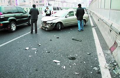 ????他告訴記者,事發(fā)時他駕車從福州路上橋口前行,結(jié)果剛剛上到東向西車道入口處,就遭遇了路阻,前方的車輛排起了長龍,就在他為堵車的原因納悶時,他發(fā)現(xiàn)前側(cè)車道上有一輛銀色的轎車撞得面目全非,駕車經(jīng)驗豐富的他想不出事故的原因?!鞍蠢碚f單向行駛的快速路往往只能發(fā)生追尾事故,車不會撞得這么重。但是這輛車的車頭卻逆向停在路中間,更為奇怪的是除了這輛車外再沒有肇事車,我都想不出這事故是咋發(fā)生的。”孫先生介紹說。