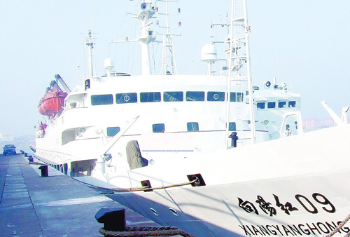 ????1月4日,天氣格外晴朗,國家海洋局北海分局海監(jiān)碼頭上停泊著一艘長達(dá)112米的我國載人深潛器海試母船。這個(gè)代號(hào)為“向陽紅09”的龐然大物在??康谋姸啻恢喧Q立雞群 。提及“向陽紅09”,可能只有極少數(shù)島城居民了解它的“底細(xì)”,但是說起我國“蛟龍”號(hào)載人潛水器,相信多數(shù)市民都會(huì)知道,它曾在2010年7月13日創(chuàng)造了我國載人潛水器最大下潛深度3759米的紀(jì)錄。