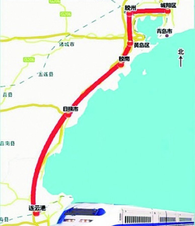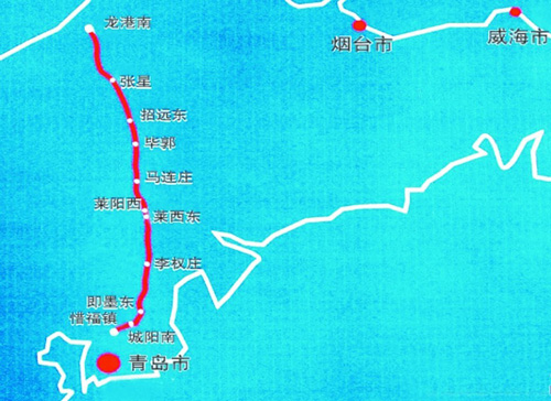 ????青榮城際鐵路從青島北站引出后,經(jīng)城陽后跨過膠濟鐵路,折向東北從即墨附近經(jīng)過,經(jīng)萊西、萊陽與既有藍煙線并站設(shè)置萊西、萊陽站后,經(jīng)桃村到達福山南站,向東沿煙臺至威海的高速公路到達威海市,到達設(shè)計終點榮成市。