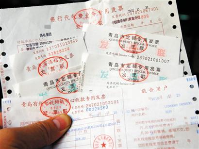 ????記者通過搜索引擎寫入“青島 發(fā)票”字樣,就彈出來了不少代開發(fā)票信息。記者撥通了其中一家代開發(fā)票公司電話1397163××××,手機(jī)號碼顯示對方在南京。自稱姓黃的男子介紹,他們目前定額發(fā)票有面額100元、200元、500元、1000元四種,此外還有各種手寫發(fā)票。 “都是假的,但是報(bào)銷絕對沒問題。”黃姓男子表示,定額發(fā)票的價(jià)格是票面金額的1%,手寫發(fā)票的價(jià)格是票面金額的0.5%。 “想要的話你先付定金,剩下的等交貨時(shí)給齊。”(記者 王萌 徐美中 通訊員 王卉)