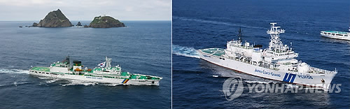 ????左為韓國的5001艦,右為日本的巡邏艇。