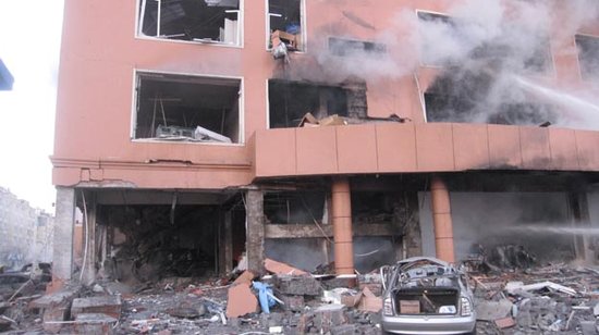 ????記者:大約是在6時20左右我趕到現(xiàn)場的時候,看到了吉林石化礦區(qū)服務(wù)大樓濃煙滾滾,一二樓火勢比較大,伴隨著一樓車庫內(nèi)氣爆的聲音應(yīng)該說火勢非常兇猛的,吉林石化礦區(qū)服務(wù)部大樓附近的樓體玻璃已經(jīng)全部碎裂了,并且有樓體已經(jīng)出現(xiàn)了裂痕,而且有的單元門也被炸飛。