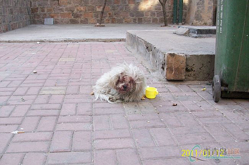 相關(guān)貼文:鞍山一路老女人虐狗 狗筋骨盡斷七竅流血被扔(圖)