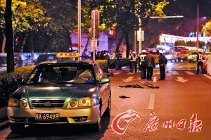 交警在事故現(xiàn)場取證。記者陳安攝 ????事故現(xiàn)場沒有發(fā)現(xiàn)剎車痕跡 ????昨晚10時25分左右,在人民北路南往北方向流花粥城對出路段,東運達公司一輛出租車將正下夜班過馬路回家的林先生撞出十幾米遠(yuǎn),不幸殞命。事故原因正在警方進一步調(diào)查當(dāng)中。 ????昨晚記者趕到現(xiàn)場,警方已拉上封鎖線,對現(xiàn)場進行勘驗,并將肇事司機帶上警車。記者看到,肇事男司機中等身材,身高1.72左右。斑馬線的北邊約15米處,倒在血泊之中的林先生已被一塊大布覆蓋。在尸體北面的六七米之處,一輛車牌號為粵A694B8的綠色出租車停在路邊。記者借助路燈,卻沒看到馬路上有任何的剎車痕跡。路邊的目擊者稱,當(dāng)時的車速飛快,估計都沒剎車。 ????路邊的人群中,一位姓陸的女士眼淚尚未擦干,警察把林先生尸體抬上車的時候,她蹲下身去,把頭埋在綠化樹后。她告訴記者,死者是她老公,姓林,廣西柳州人,今年42歲。兩年前,他們夫妻來到廣州打工,家住新市,有一雙兒女。昨晚,她在家做好宵夜等著老公,卻等來“他被車撞了”的噩耗。 ????林先生的早班工友及陸女士告訴記者,昨晚10時25左右,在人民北路唐苑酒家打工的林先生與工友下班,大家從流花粥城對出的斑馬線過馬路。“嘭”的一聲悶響,過完馬路的工友們猛然回頭,卻發(fā)現(xiàn)林先生已被撞離斑馬線十五米遠(yuǎn)。當(dāng)時斑馬線的交通指示燈是紅是綠,沒有人能說清楚。 ????昨晚11時35左右,現(xiàn)場處理事故的警察把尸體抬上事故清障車,陸續(xù)離開現(xiàn)場。清冷的冬夜,陸女士一人望著林先生殞命的地方,神情呆滯。(作者:湯南) |