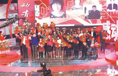 ???每到年初歲末,有一種情愫總會牽動著我們的腳步,讓我們禁不住回頭凝望——那就是回味感動,感受溫暖;每到歲末年初,有些面孔總要浮現(xiàn)在我們的眼前,讓我們深深地景仰——那就是感動青島的 “草根英雄”們。年逾花甲仍然熱心公益的七彩華齡志愿者團(tuán)隊(duì);毅然將一個(gè)腎捐給繼子的可敬繼母;連續(xù)10年捐助雙胞胎的軍中雷鋒;一天能包1000多個(gè)餃子希望病中的母親早日回家的11歲 “最小水餃工”;15年里背著孩子上學(xué)的偉大母親……昨晚,2010年“感動青島”人物頒獎典禮在青島電視臺800平方米演播大廳舉行,10位“感動青島”十佳人物和3個(gè)“感動青島”群體代表上臺領(lǐng)獎。市委常委、宣傳部長王偉出席儀式并為獲獎代表頒獎。
