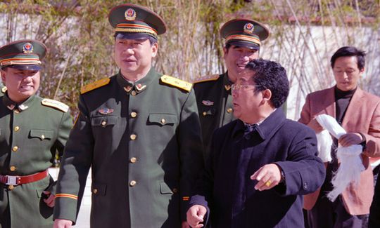 新華網資料圖:王長河少將在波密縣武警森林中隊檢查指導工作。