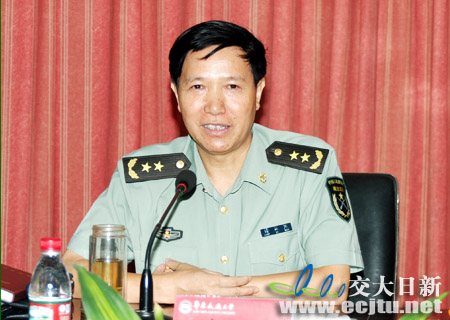資料圖:南京軍區(qū)政治部主任褚益民來校指導國防生培養(yǎng)工作,并在座談會上發(fā)表講話。