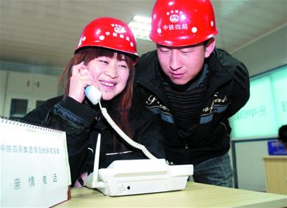 ????工地上的工人都在除夕夜給家里打了電話(huà),電話(huà)從當(dāng)天晚上7時(shí)一直打到正月初一的凌晨。海灣大橋青島端接線(xiàn)工程的十多個(gè)項(xiàng)目部也安排工人們與家里通話(huà),40部愛(ài)心電話(huà)承載了濃濃親情。