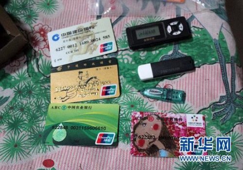 這是公安機(jī)關(guān)繳獲的犯罪分子使用的銀行卡(1月29日攝)。