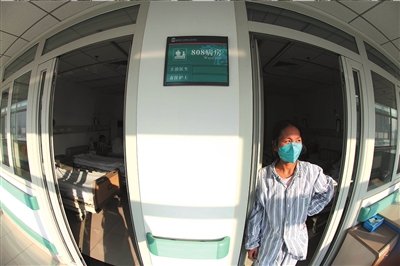 2009年12月,佑安醫(yī)院一名即將出院的甲流患者在病房門口沐浴陽光。(資料圖片) 本報記者周民攝