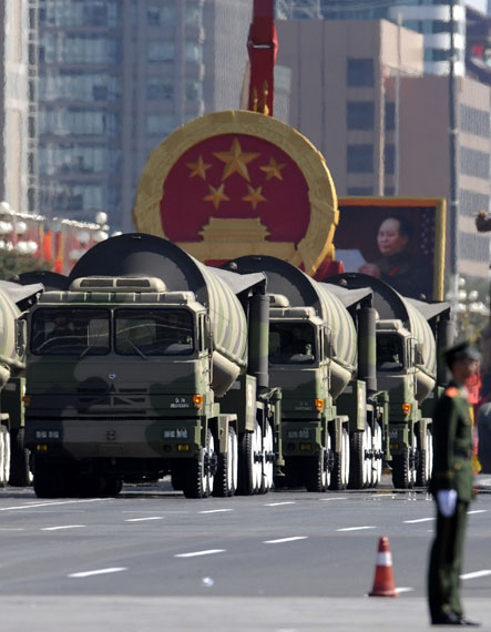 資料圖:二炮部隊最新型東風(fēng)31甲戰(zhàn)略導(dǎo)彈在60周年國慶閱兵式上亮相。新華社記者 劉大偉攝