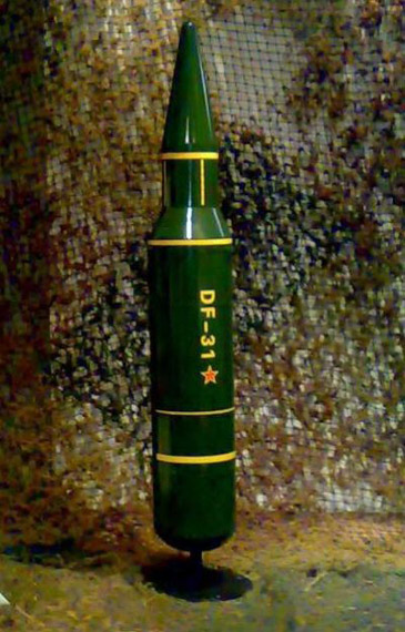 資料圖:2007年公開的“東風(fēng)-31”洲際彈道導(dǎo)彈模型。