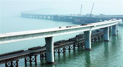 ????繼2010年12月9日首個(gè)標(biāo)段主線橋貫通后,今年元旦前又有一個(gè)標(biāo)段主線橋貫通了,這就表示已貫通的主線橋長(zhǎng)達(dá)3.5公里,是全線的一半。截至目前,橋梁整體進(jìn)度完成56%,計(jì)劃主線橋今年與海灣大橋同步建成通車,屆時(shí)從環(huán)灣大道可直通海爾路。