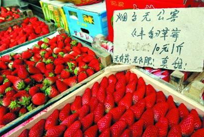 ????現(xiàn)在市場上出售的不少草莓都是用含有激素的草莓催熟的,城陽一位種草莓的行家昨天告訴記者,這種催熟的草莓在青島較少,多在煙臺龍口等地區(qū)。“草莓有大棚種的,也有大田草莓,大田草莓一般在七八月份成熟,采摘期較短,也就是20到30天,而大棚草莓一般能從12月底摘到來年的5月份。這位行家稱,催熟草莓用的是含激素類的農(nóng)藥,一般在草莓果實(shí)快成熟時(shí)使用,使用目的是為了果大。 “催熟的草莓果實(shí)比沒催熟的要大,從外觀看和沒用農(nóng)藥的沒差別,但是果實(shí)里面不同,正常生長的草莓果肉緊實(shí),而催熟的草莓口感較差,果肉像棉絮一樣。 ”