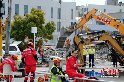 ????2011年2月26日,新西蘭克萊斯特徹奇,中國救援隊(duì)在CTV大樓展開救援工作。除廢墟清理工作外,中國救援隊(duì)還將利用生命探測(cè)設(shè)備搜尋幸存者。