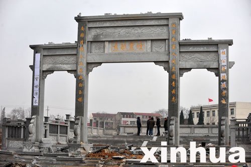 ????“中國(guó)網(wǎng)事”記者27日趕赴前川街火廟村,這個(gè)異常顯眼的墓園恰在村委會(huì)正對(duì)面,現(xiàn)場(chǎng)幾個(gè)農(nóng)民在向外運(yùn)沙,漢白玉浮雕裝飾被移到路邊,花崗巖臺(tái)階、門(mén)樓已經(jīng)被鏟掉部分。上午11時(shí)左右,村里調(diào)來(lái)挖掘機(jī),十多分鐘后,墓園被整體推平。
