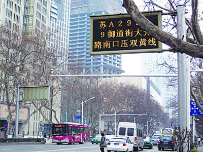“蘇A29XXX在御道街大光路南口壓雙黃線”、“蘇A99XXX在漢中路長途車站附近違停上下客”,細(xì)心的駕車人這幾天可能發(fā)現(xiàn),中山東路、中山路、漢中路等主干道增添了滾動(dòng)播放一些車輛違法行為的顯示屏。這是南京交管部門的一項(xiàng)創(chuàng)新舉措,目前他們已利用主干道上的52塊LED顯示屏,對(duì)沿途行駛的機(jī)動(dòng)車相應(yīng)違法行為進(jìn)行實(shí)時(shí)發(fā)布違法信息?,F(xiàn)在雖然不進(jìn)行處罰,但實(shí)施一段時(shí)間后,將以此為依據(jù),對(duì)違停等處以100元罰款,逆行處以200元罰款。