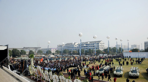 2011年3月4日,浙江溫嶺市新河鎮(zhèn)出現(xiàn)一場(chǎng)豪華葬禮。9輛加長(zhǎng)林肯轎車、千人鼓樂(lè)隊(duì)、十六門禮炮等組成的送葬隊(duì)伍吸引了過(guò)路人的眼光。浙江省溫嶺市新河中學(xué)大操場(chǎng),當(dāng)?shù)氐膸孜黄髽I(yè)家為母親舉辦的豪華葬禮。