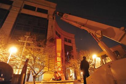 ????昨晚9時許,市城管執(zhí)法局調(diào)集工程車輛和施工人員,開始強制拆除香港中路豐合廣場上的違法立牌廣告。據(jù)介紹,香港路周邊業(yè)戶違法設(shè)立的立牌廣告清除行動正式啟動。