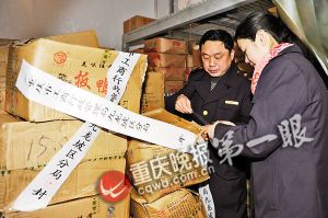 執(zhí)法人員正在查封過期板鴨