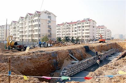 ????記者沿著勁松一路繼續(xù)往北走,穿過合肥路,來到四季景園小區(qū)附近看到,其西側(cè)是大片大片的小土堆,緊鄰小區(qū)西邊外墻的土堆已進駐了大型挖掘機開始施工。