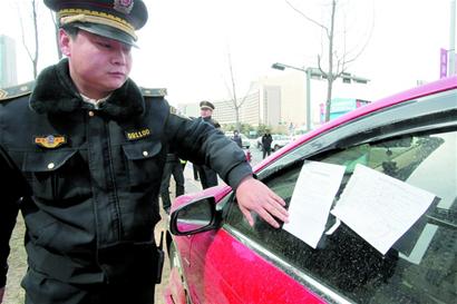 ????“對(duì)在人行道上亂停車的,第一次我們一般會(huì)貼一個(gè)提醒通告,以后才貼罰款單?!睂O林告訴記者,他們發(fā)現(xiàn)占用人行道停車的違法車輛后,將先從信息庫(kù)內(nèi)查詢,如果該車曾被提醒過,那么就要進(jìn)行處罰。根據(jù)我市相關(guān)規(guī)定,對(duì)于占用人行道亂停車屢次不改的,城管部門可以采取強(qiáng)制措施,所以如果查到該車?yán)塾?jì)有3次在人行道亂停車,并未交罰款的,城管部門將直接給予鎖車,強(qiáng)制車主接受處理。