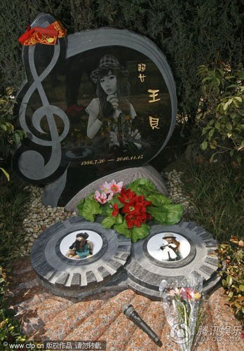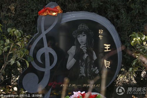 3月27日,石門峰“名人墓”里筆者見到超女王貝的墓碑,墓碑上刻巨大音符,碑前有粉絲留下的話筒和鮮花,保安稱這樣的墓價值不菲。現(xiàn)場,有圍觀的群眾說,“這么漂亮還整什么容?”