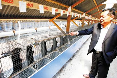 昨天,記者跟隨養(yǎng)殖中心負責(zé)人李仁名來到了丹麥貂在青島的家。李仁名從門口拿了一根木棒,順著籠子一溜劃了過去,原本安靜的房間突然變得躁動,籠子里冒出了一道道黑影。走近一看,這些黑影便是丹麥貂。記者看到丹麥貂生活的籠子就像一個帶花園的二層小樓,想休息時便可跳到二層的擋板上。記者發(fā)現(xiàn),只要有東西碰打鐵籠子,丹麥貂便齊刷刷站起來,人往哪走它們就往哪看,就像在行注目禮一樣。