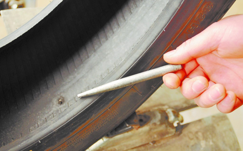 ????據(jù)李女士介紹 ,她的愛車是一輛夏利N5,“我開車時格外仔細,從買車到現(xiàn)在可以說還沒出過問題。”3月14日早上,李女士準備開車外出時,發(fā)現(xiàn)愛車左后輪胎癟了下去,“我檢查一下發(fā)現(xiàn)車胎是被一個螺絲釘給扎的,因為有急事,我只好讓父親幫著把備用胎給換上。”3月16日,李女士帶著這個被扎的輪胎來到威海路上一家修理廠補胎,補好后,工人將其更換上。