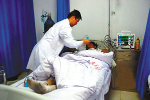 受傷患者在醫(yī)生的照顧下平穩(wěn)地吸入氧氣和接受輔助檢查。醫(yī)護(hù)人員告訴記者,患者均有頭暈、胸悶的癥狀,主要是吸入性煙氣中毒,其余生命體征正常。