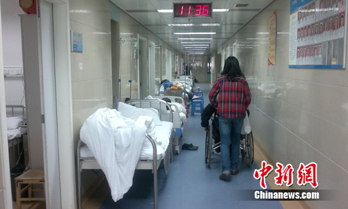 鄭州人民醫(yī)院普通病房區(qū)走廊住滿病人