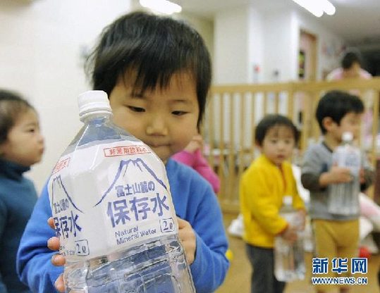 資料圖片:3月24日,在日本東京一個幼兒園,小朋友分到了瓶裝水。新華社/路透