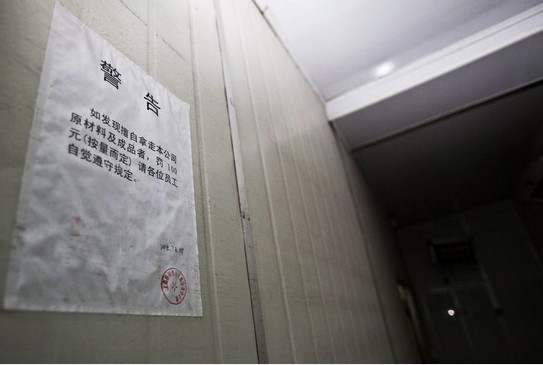 在檢查了證件后,記者被允許上樓進(jìn)入生產(chǎn)車間。此時(shí),生產(chǎn)車間也有民警執(zhí)勤,而門上也已貼上了半幅封條。辦公室內(nèi)大量文件已被相關(guān)部門取走,兩名質(zhì)監(jiān)人員仍在不停忙碌,將前晚廠房內(nèi)剩下的饅頭集中到另一個(gè)房間內(nèi),并統(tǒng)一貼上封條。