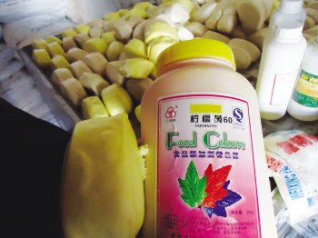 ????“檸檬黃”、“玉米香精”和成的面是用來制作玉米饅頭的;不加色素的面粉用來制作白饅頭,為增加甜度和香度會加一些糖精和香精。